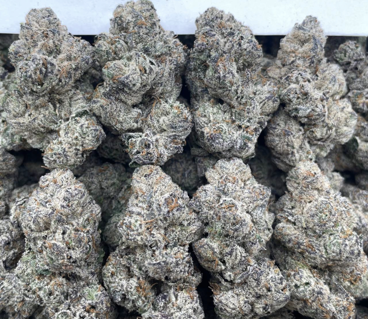 Bleu Zlushie is an indica dominant hybrid strain (70% indica/30% sativa) created through crossing the mouthwatering Ice Cream Cake X Grapefruit Zkittlez X Gelato #41 strains. If you’re on the hunt for a delicious bud with a bright flavor and super spacey high, look no further than Bleu Zlushie. The taste is exactly what you’d expect, with a blend of sugary, sweet blueberries accented by sour citrus and a touch of spicy skunk. The aroma is very similar, with a skunky, spicy overtone accented by sweet fruity blueberries and a punch of sour citrus. The Bleu Zlushie high will hit you as soon as you exhale, filling you with an immediate sense of euphoric energy that pushes away any negative thinking and replaces it with a spacey, heady sense that is hazy and numbing. As your mind settles into this happy place, a calming body high will begin to wrap its way around you, eventually leaving you feeling super locked down to the couch. In combination with its insanely high 28-30% average THC level, these effects give Bleu Zlushie a great choice for treating conditions such as chronic pain, chronic stress or anxiety, depression and headaches or migraines. This bud has dense and small, heart-shaped emerald-green nugs with deep purple undertones, thin orange hairs and chunky, purple-tinted white crystal trichomes.