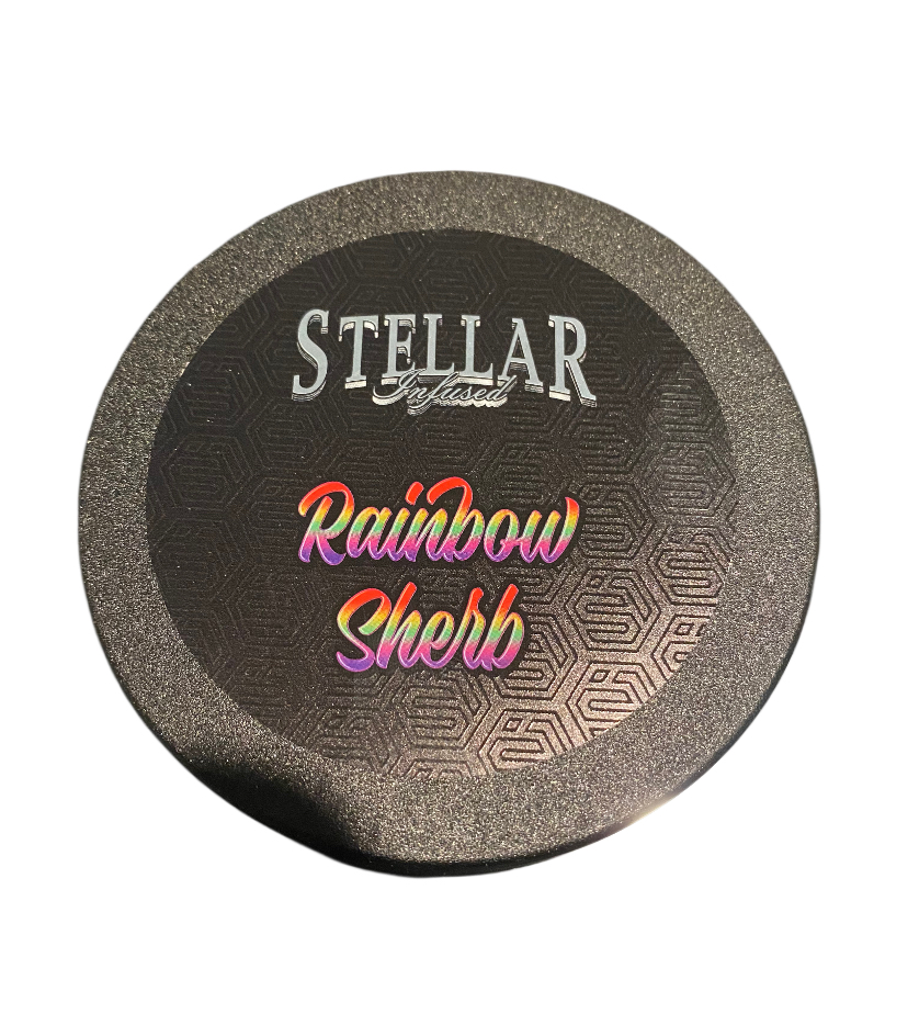 Rainbow Sherbet is an insanely delicious evenly balanced hybrid (50% indica/50% sativa) strain created through crossing the mouthwatering Champagne and blackberry strains. If you’re in the market for a great tasting bud and well-balanced effects, Rainbow Sherbet is it! This bud has a sweet berry fruity flavor that has a sugary exhale with a kick of fresh mint to it. The aroma is very earthy and fruity with a sweet berry overtone accented by fresh mint. The Rainbow Sherbet high hits you almost immediately after your first exhale with a mental rush of cerebral energy that lifts your spirits and infuses you with a sense of creativity with a touch of focus. As your mind brightens, your body will drop off into a state of deep relaxation that quickly turns into a heavy body stone. In combination with its high 20-22% average THC level, these potent effects give Rainbow Sherbet an edge in treating conditions such as chronic pain, arthritis, spinal cord injury, anxiety, and nausea. This bud has lemon-shaped forest green nugs with thin orange hairs and a thick frosty coating of tiny amber colored crystal trichomes.